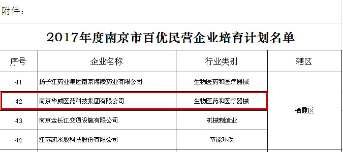 為貫徹落實市委市政府《關于進一步推動民營經濟發展的意見》(寧委發﹝2016﹞33號),充分發揮優秀民營企業的示范和帶動作用,結合近幾年民營企業運行發展情況,經企業申請、各區(開發區)主管部門初審推薦、專家評審和綜合考評等程序,華威醫藥等共105家企業入選“2017年度南京市百優民營企業培育計劃”。