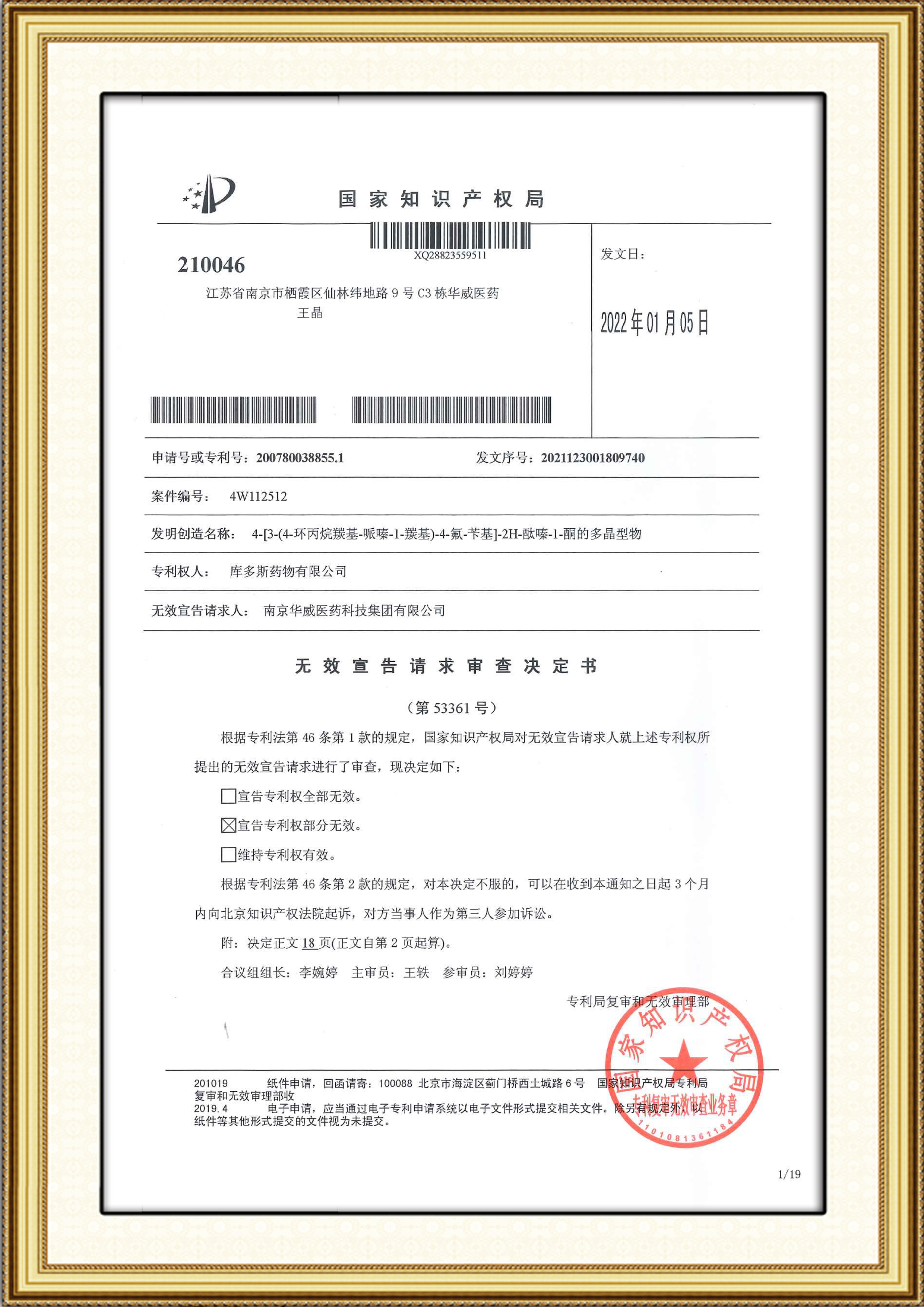 值得關(guān)注的是這是繼上次成功挑戰(zhàn)托比司特晶型專利后,我司又一次挑戰(zhàn)重磅藥物專利成功,再一次證明了我司不僅具有雄厚的研發(fā)實力,更有一支高水平的知識產(chǎn)權(quán)隊伍為華威醫(yī)藥的研發(fā)保駕護航,數(shù)次為企業(yè)項目進展掃除專利障礙,規(guī)避侵權(quán)風(fēng)險,最大程度保障企業(yè)及客戶的利益。